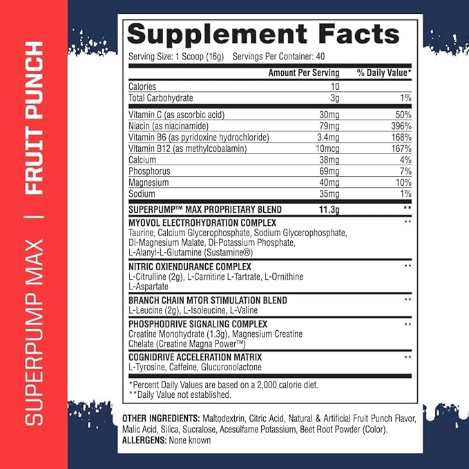 Gaspari Nutrition - SuperPump MAX - The Ultimate Pre Workout Powder, Sustained Energy Preworkout, Nitric Oxide Booster, Muscle Growth, Recovery & Replenishes Electrolytes - 40 Serving (Fruit Punch)