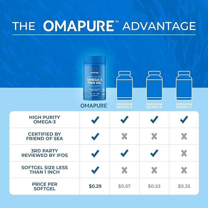 - Your Journey to Wellness Starts Here: OMAPURE gives you peace of mind that your Omega-3 supplement is safe for you and your family. Each batch is reviewed by premier 3rd party lab IFOS to ensure the highest quality, safety, and purity standards. Our fish are wild-caught from the South Pacific Ocean using stringent fishing practices certified by Friend of the Sea.