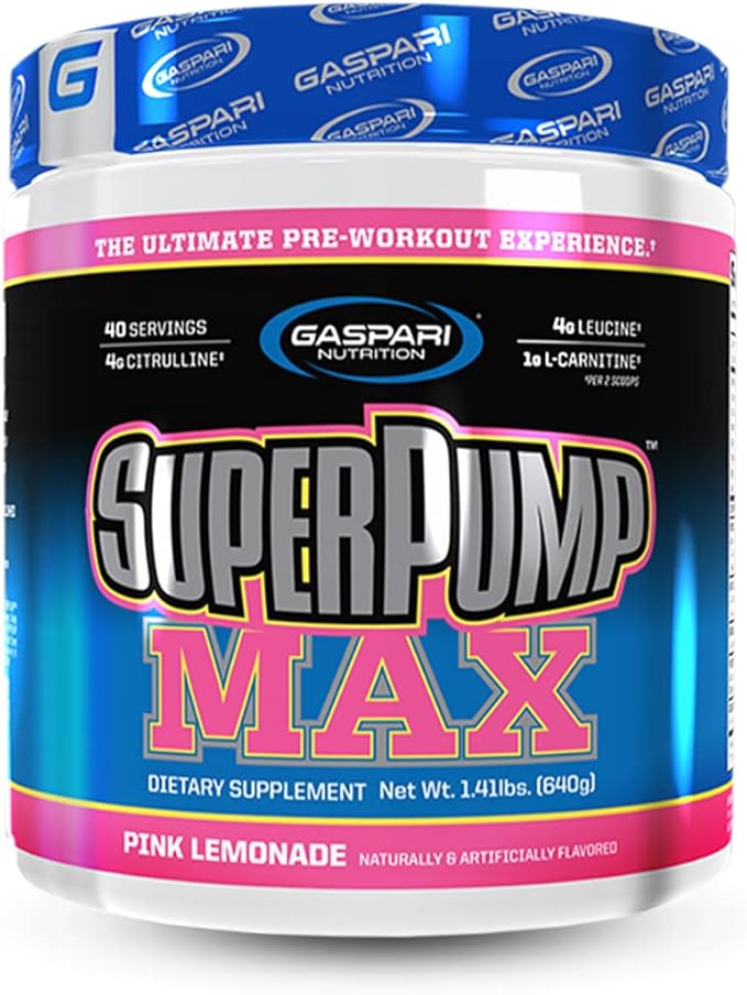 Gaspari Nutrition SuperPump MAX , The Ultimate Pre Workout Powder, Sustained Energy Preworkout, Nitric Oxide Booster, Muscle Growth, Recovery & Replenishes Electrolytes (40 Serving, Pink Lemonade)