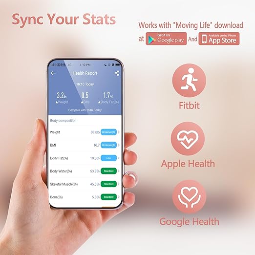 - 【Measure Multiple Health Indexes】: 14 health indicators can provide information about weight, BMI, body fat rate, body water, skeletal muscle rate, bone mass, protein, muscle mass, visceral fat, subcutaneous fat, lean body weight, body age, and foundation metabolism, activity metabolism