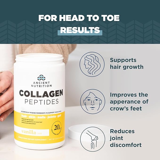 Ancient Nutrition Collagen Peptides, Collagen Peptides Powder, Vanilla Hydrolyzed Collagen, Supports Healthy Skin, Joints, Gut, Keto and Paleo Friendly, 12 Servings, 20g Collagen per Serving