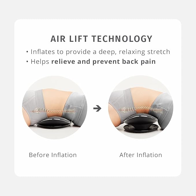 Homedics Lumbar Lift Back Stretcher with Vibration Massage and Soothing Heat, Air Lift Technology, Adjustable Intensity, 2 Auto Programs, Compact and Portable, Increases Flexibility, Relieves Pain