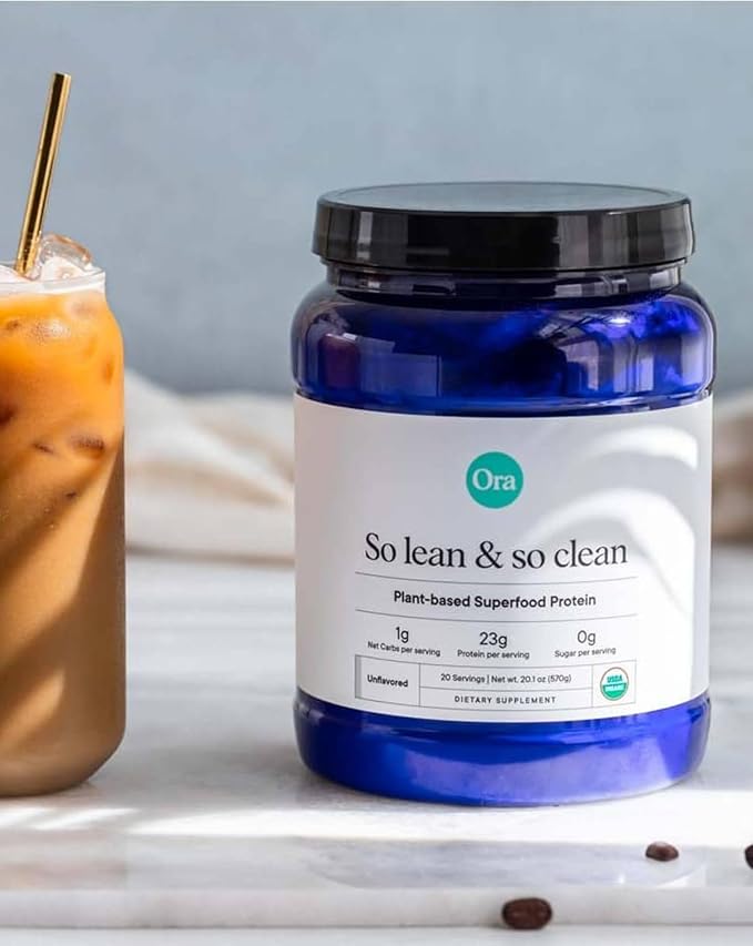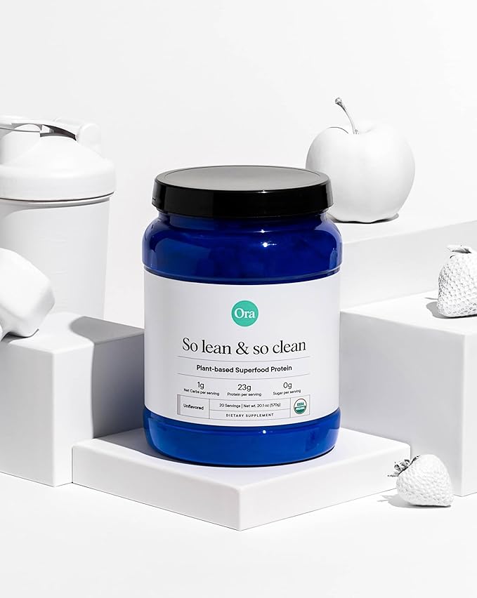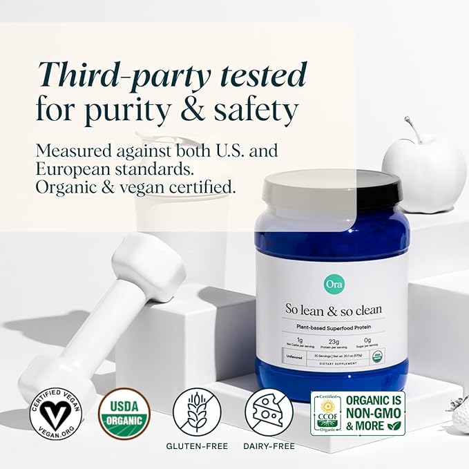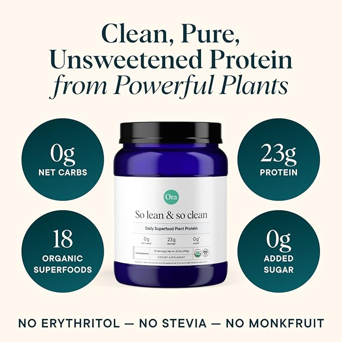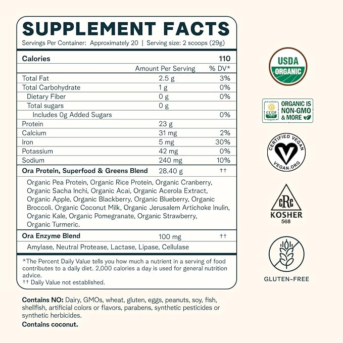 Ora Organic Vegan Protein Powder - 23g Plant Based Pea Protein + Superfood for Women and Men - Unsweetened 20 Servings, No Erythritol, Digestive Enzyme, Keto-Friendly, Gluten-Free, Paleo, Soy-Free