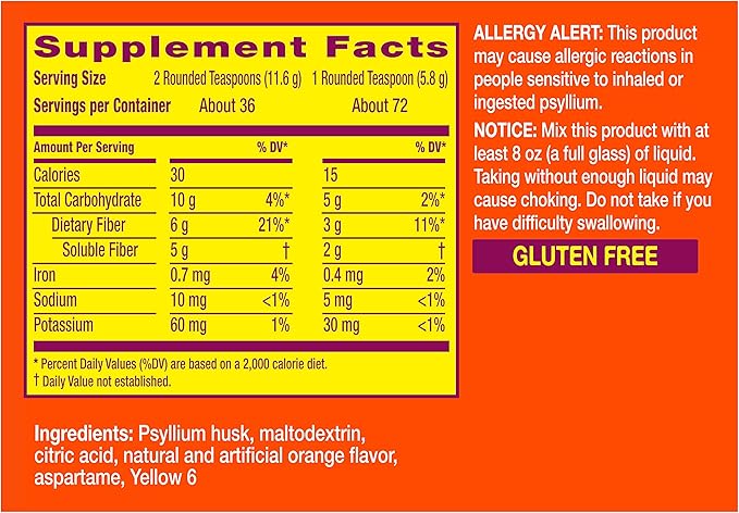 Metamucil Fiber, 4-in-1 Orange SugarFree Powder 72 (Pack of 2)