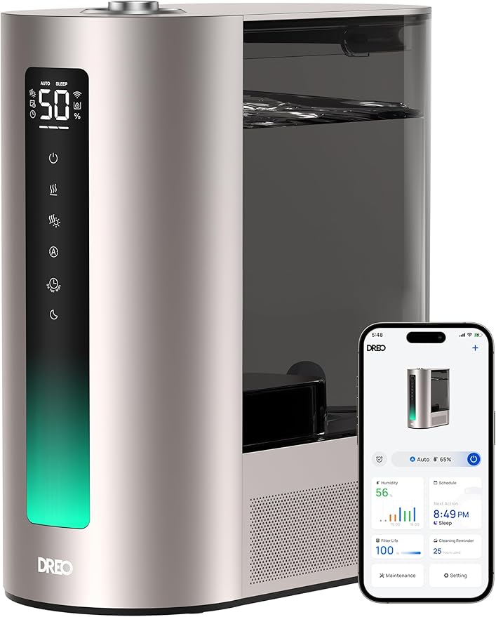 - Precise Room Humidity Control: Thanks to its accurate sensing and compensation algorithm, the Dreo 6L Smart Air Humidifier for bedroom lets you effectively set your target humidity with 5% tolerance, twice more precise than traditional air humidifiers, while its humidity indicator light lets you easily check your living room humidity from far away.