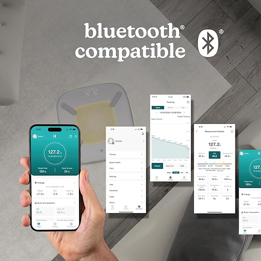 - The Homedics Scale Experience: Enjoy a high-resolution bright white LED display and seamless syncing via Bluetooth to our app, compatible with Apple Health, Google Fit, and Fitbit.